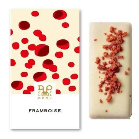 フランボワーズを練りこんだのアーモンド生地とホワイトチョコのガナッシュの2層構造。